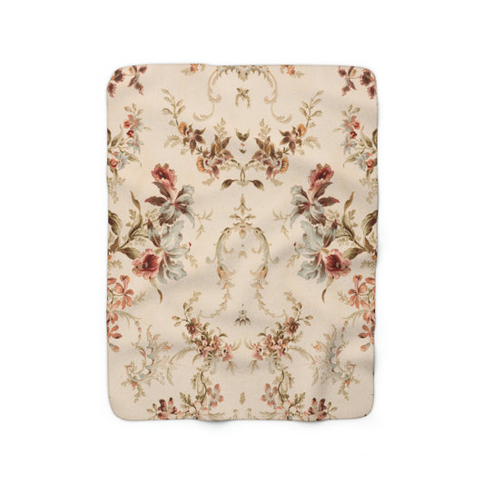 Sherpa Fleece Blanket with a Vintage Floral Pattern