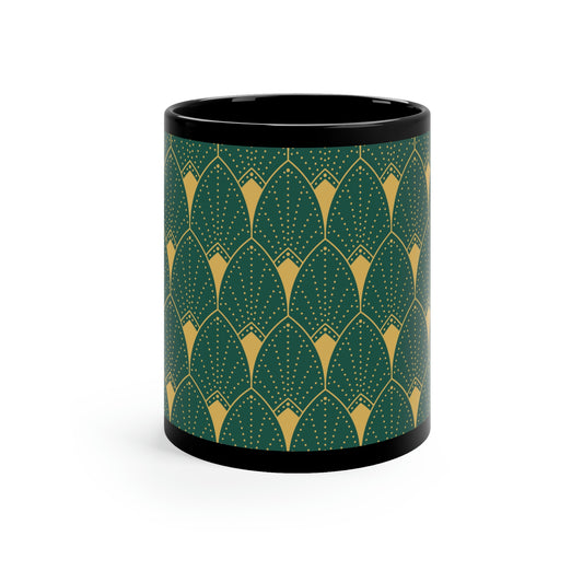 Art Deco Green and Gold Pattern -11oz Black Mug