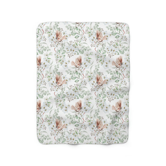 Sherpa Fleece Blanket with a Floral Bird Pattern