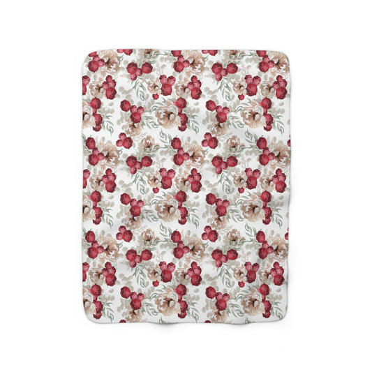 Sherpa Fleece Blanket with a Red Floral Pattern