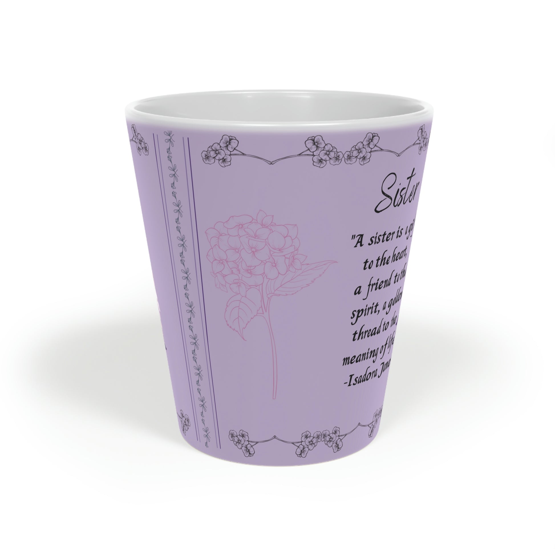 Enjoy your beverage with a custom touch thanks to this personalized latte mug. This Sister latte mug is a great gift idea for those close to you in your life. With a beautiful quote by Isadora James. Featuring a scratch-resistant finish for long-lasting good looks, these mugs come with an easy-grip handle and a durable white ceramic body.